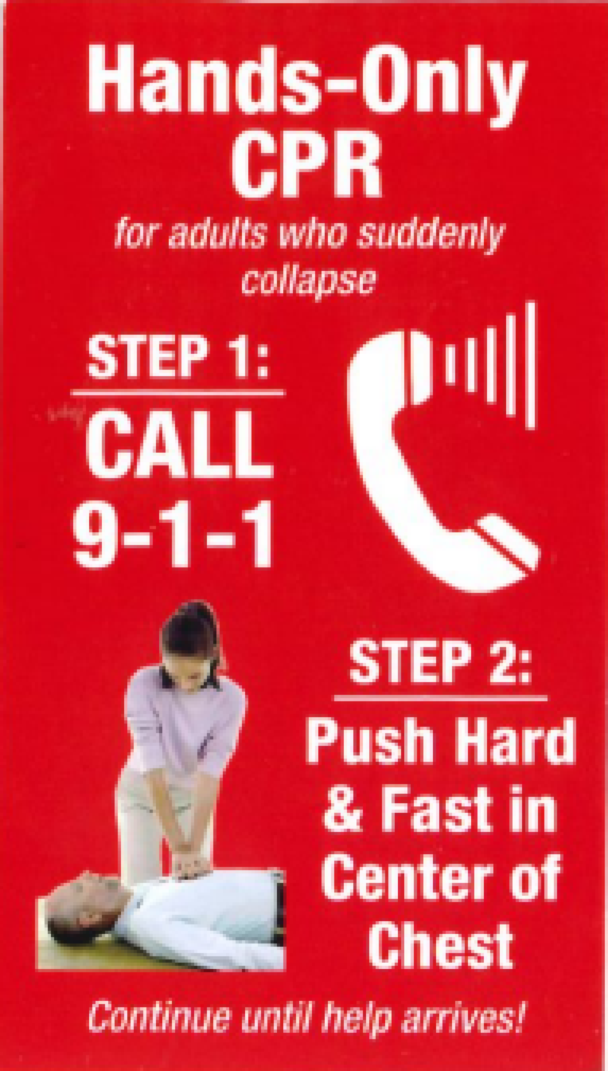 - KEEP DOING COMPRESSIONS UNTIL HELP ARRIVES.