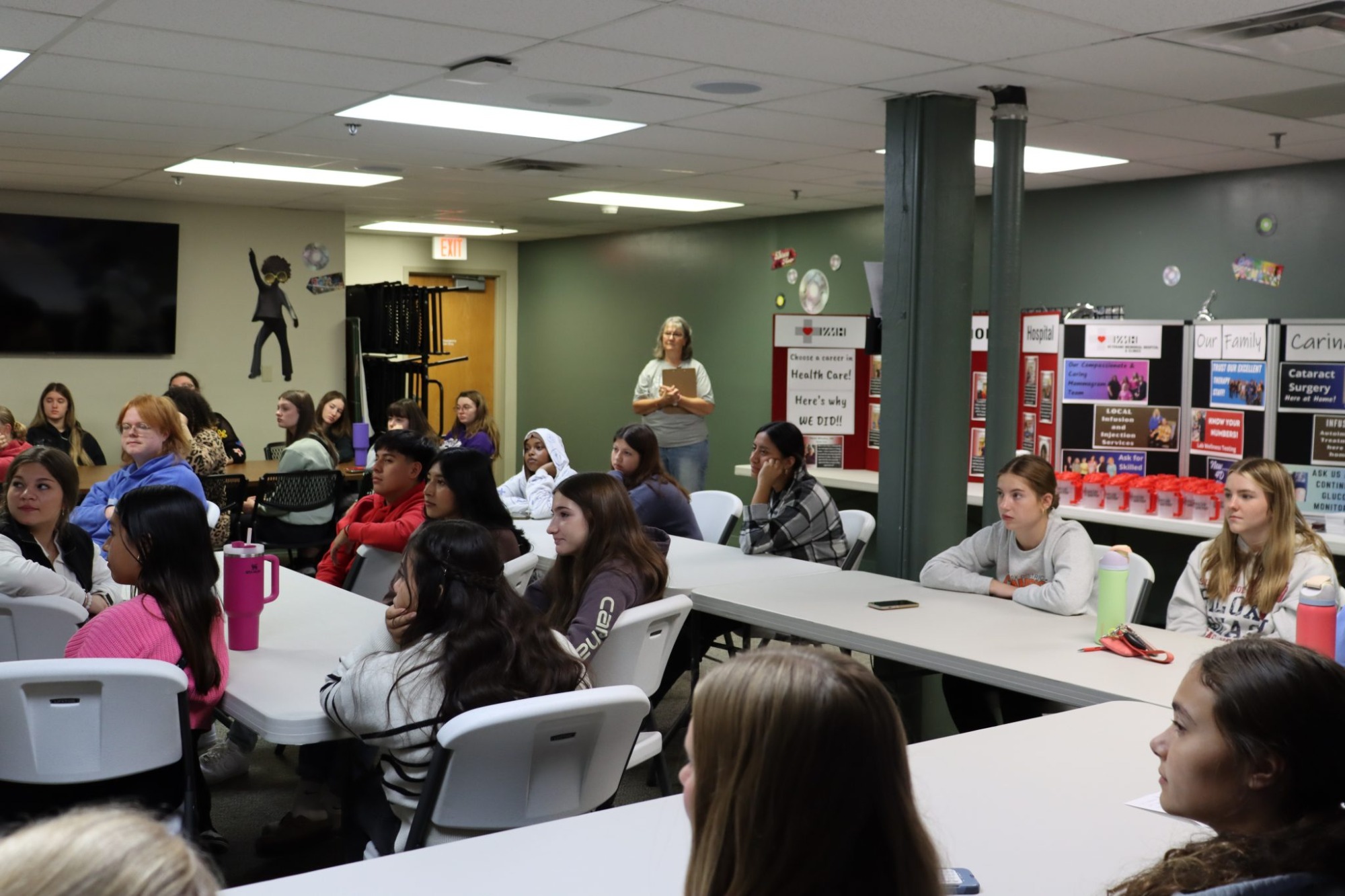 These students spent the school day at the hospital learning about a wide variety of healthcare careers, including nursing, nursing assistant, health information management/medical records, medical assistant, phlebotomy, clinical, respiratory therapy, laboratory, x-ray, physical therapy, occupational therapy, speech therapy and sports medicine, pharmacy, nutrition, dietetics, behavioral health, home care, dental assistant, chiropractic, surgery, paramedic and emergency medical technician.