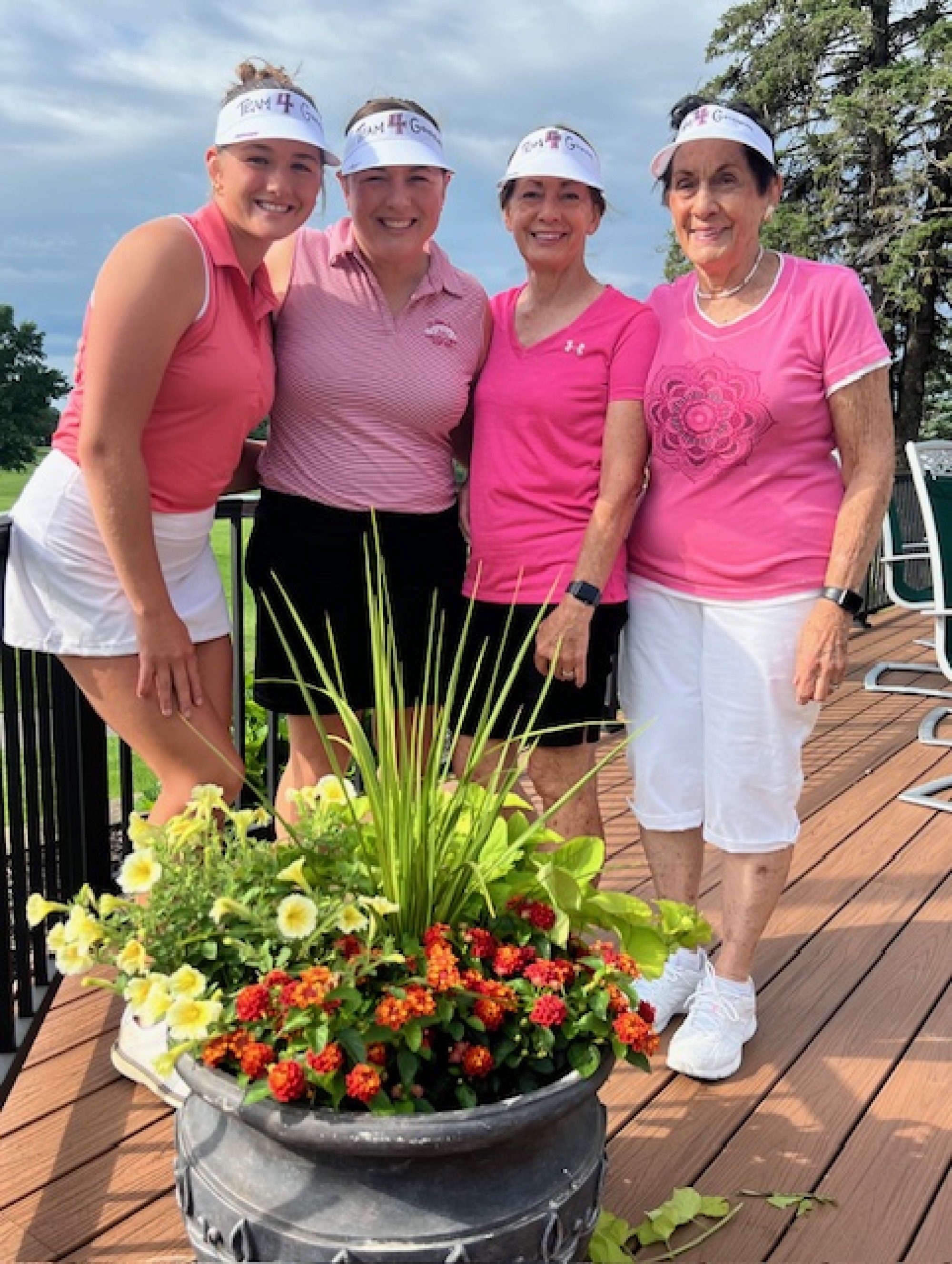 Waukon Golf and Country Club held a 4 gal best shot invitational golf tournament on Monday, June 24 and the committee of Barb Hanson, Nancy Einck, and Linda DeBuhr chose a “Pink Out” theme to raise funds for breast cancer awareness and prevention. Chris Weymiller shared her recent breast cancer diagnosis and journey with the group. 60 golfers from the tristate area enjoyed the golf and fundraising activities. A $500 donation was presented to the Veterans Memorial Hospital Radiology Department for the Mammography fund. The winning team of the Championship flight with a score of 66 was the FOUR generation family team pictured here. Brenna Bodensteiner, age 18, her mother Amy Bodensteiner, age 46, her grandmother Cathy Angel, age 72, and her great-grandmother, age 92, JoAnn Peake.