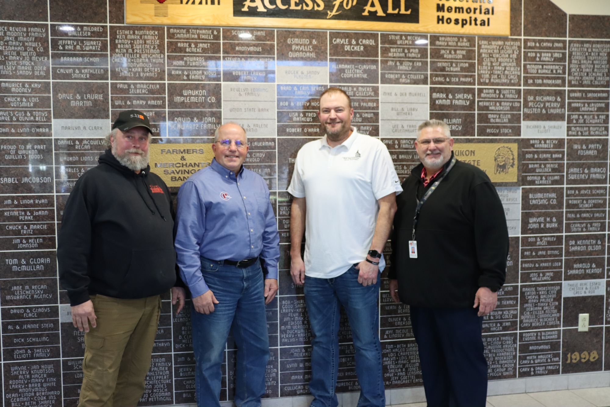 State Representative Jason Gearhart stopped and visited Veterans Memorial Hospital when in town on Friday, January 30, for a brief visit with hospital representatives. Administrator Michael Coyle; Board of Trustees Chair Dennis Lyons; and Board member John Ellingson all met with Gearhart to discuss a number of projects and opportunities the hospital is involved with. They will plan to meet with Gearhart again in March when they travel to Hospital Day on the Hill in conjunction with the Iowa Hospital Association in Des Moines. Gearhart will return again in the near future for a full tour of the hospital and clinics.
