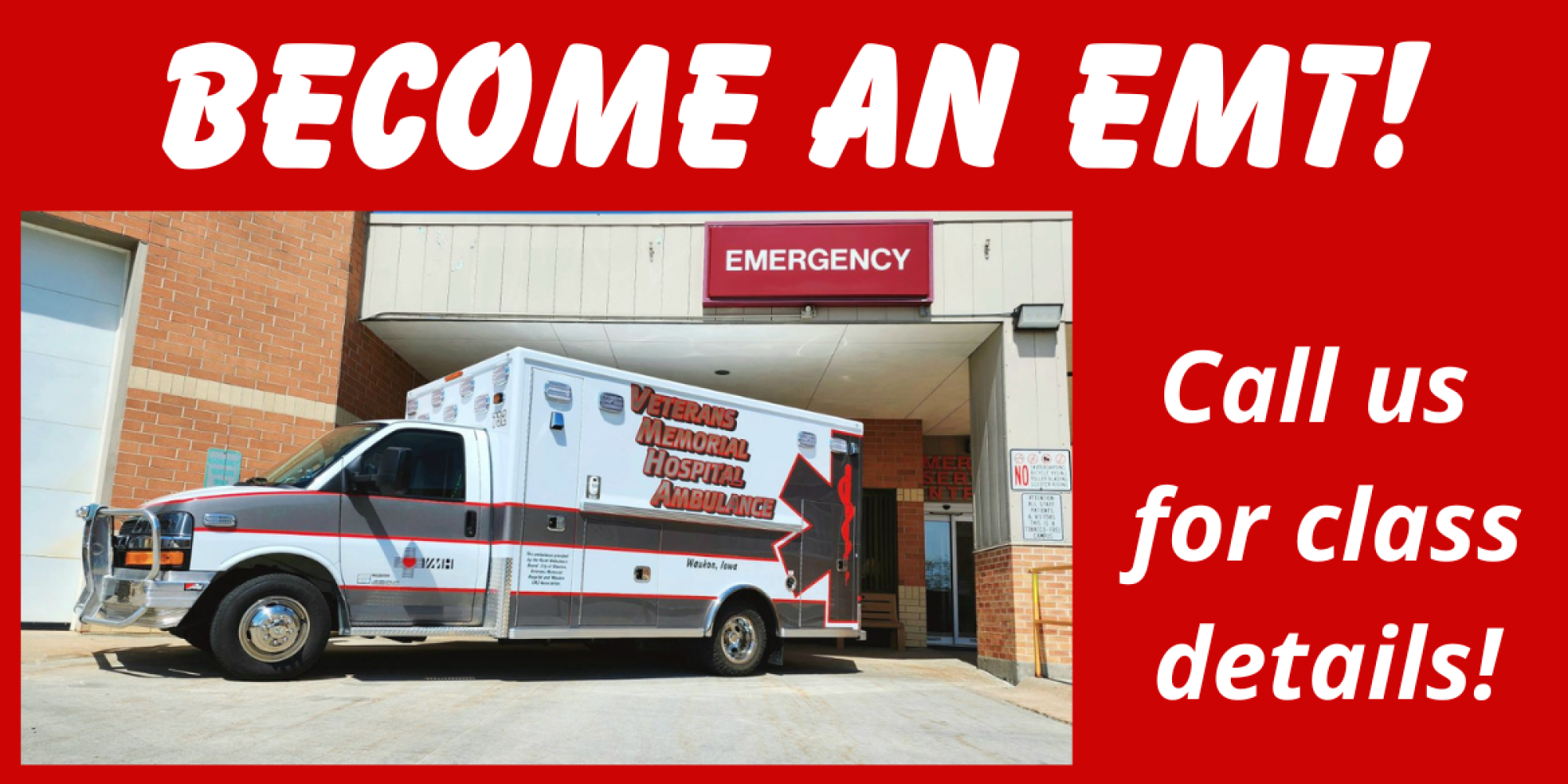 For more information, please contact Cheryl Livingston, Paramedic and Class Instructor, at Veterans Memorial Hospital at (563) 568-3411.